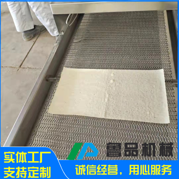 將制好的面漿放入漿捅內(nèi),當烤輪加熱到160度后,開動漿泵將蛋漿送至噴嘴處,,操作離合器操作桿,使蛋液沾附在烤輪的圓弧表面,順著烤爐旋轉(zhuǎn)經(jīng)過270-300度角時,面漿熟化,自動與烤輪分離,形成固定厚度的烤鴨餅,春卷皮,荷葉餅,卷餅等,即可折迭出售或立即卷包春卷。